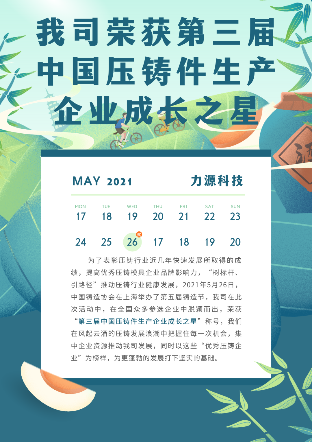 我司榮獲第三屆中國(guó)壓鑄件生產(chǎn)企業(yè)成長(zhǎng)之星